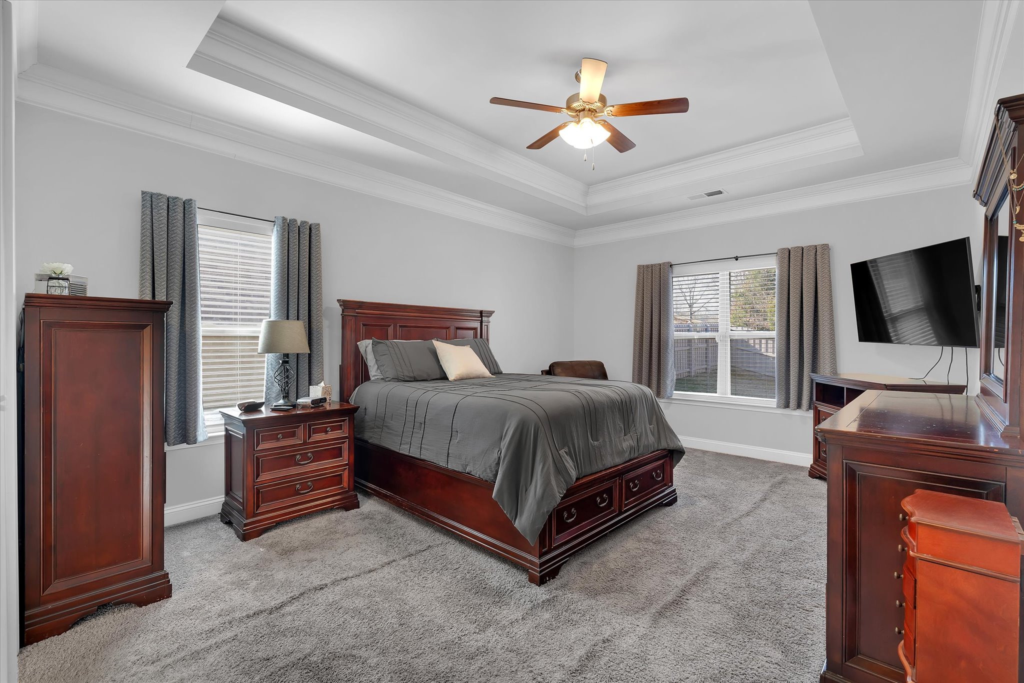 The private primary suite features a trey ceiling, crown molding, and a spacious en-suite bath featuring double sinks, a walk-in shower with seat, a private water closet, and a generous walk-in closet. Three additional bedrooms provide flexibility for guests, a home office, or hobbies. Step outside to the screened porch overlooking the fenced backyard, perfect for relaxing evenings or entertaining. Located just minutes from shopping, dining, and major commuter routes, 301 Beaver Lodge Way offers convenient, low-maintenance living in one of Greenville’s most desirable locations.